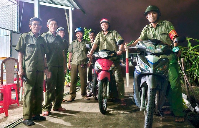 Đội Dân phòng cơ động CCB ấp 9 không có kinh phí hoạt động, cũng chẳng có chế độ phụ cấp. Nhưng đều đặn mỗi tối thứ Tư và thứ Bảy hàng tuần, từ 20 giờ đến 23 giờ, những người lính năm xưa lại tập hợp tại Nhà văn hóa ấp, lên đường tuần tra. “Cơm nhà, áo vợ” - câu nói vui nhưng đầy yêu thương của các anh khi kể về công việc của mình - là minh chứng cho tinh thần tình nguyện, trách nhiệm với cộng đồng.