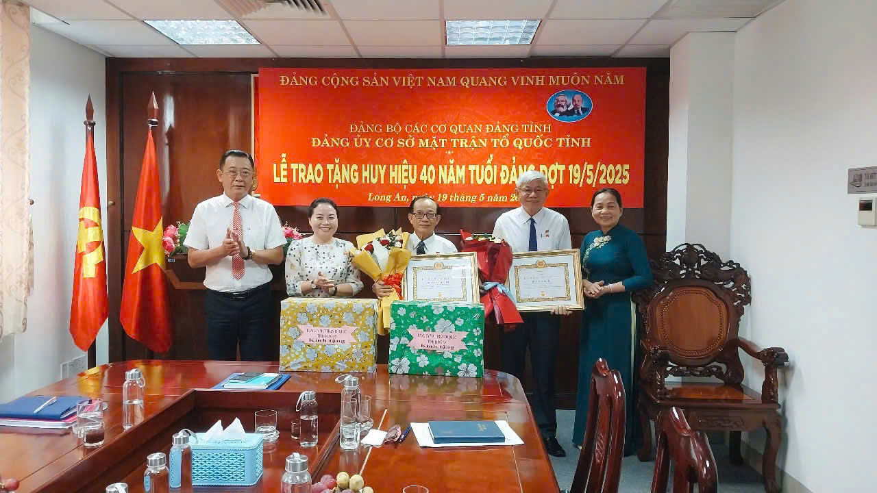 Đảng ủy Mặt trận Tổ quốc tỉnh trao huy hiệu 40 năm tuổi Đảng đợt 19/5